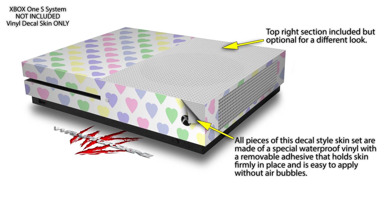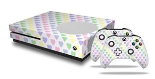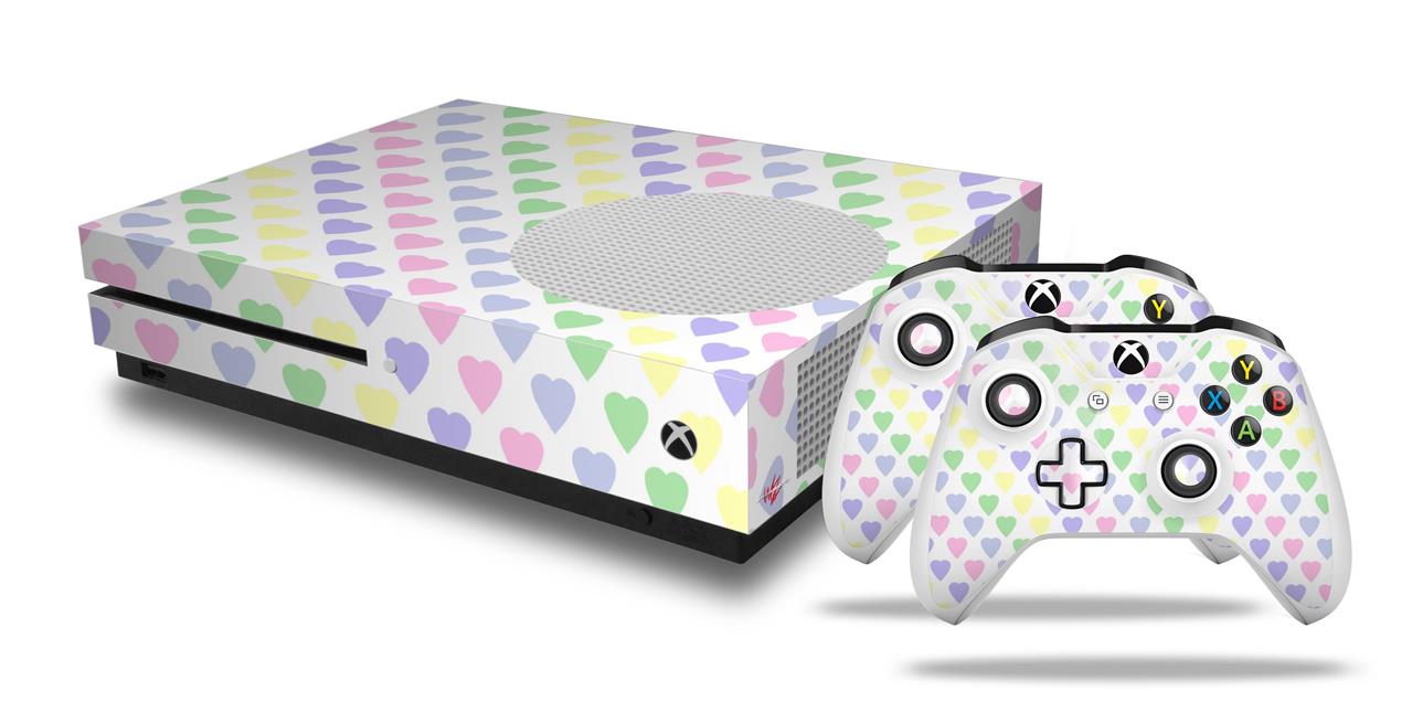 WraptorSkinz Decal Skin Wrap Set works with 2016 and newer XBOX One S Console and 2 Controllers Pastel Hearts on White