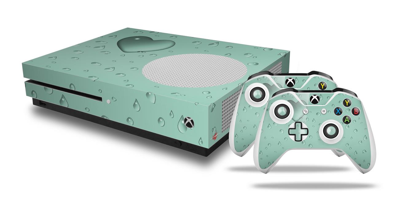 WraptorSkinz Decal Skin Wrap Set works with 2016 and newer XBOX One S Console and 2 Controllers Raining Seafoam Green