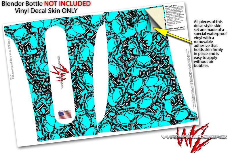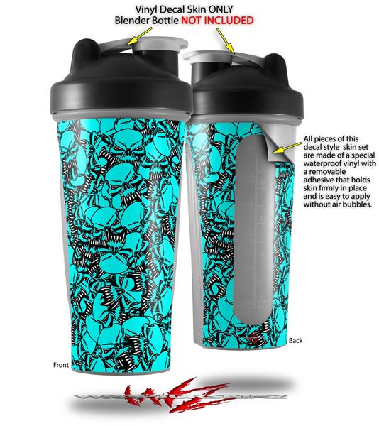 Skin Decal Wrap works with Blender Bottle 28oz Scattered Skulls Neon Teal (BOTTLE NOT INCLUDED)