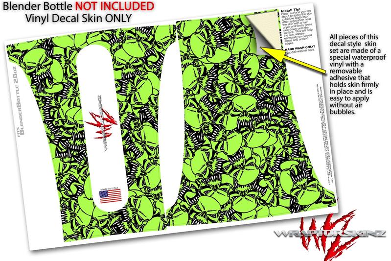 Skin Decal Wrap works with Blender Bottle 28oz Scattered Skulls Neon Green (BOTTLE NOT INCLUDED)