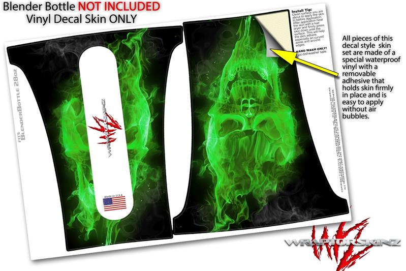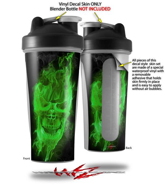 Skin Decal Wrap works with Blender Bottle 28oz Flaming Fire Skull Green (BOTTLE NOT INCLUDED)