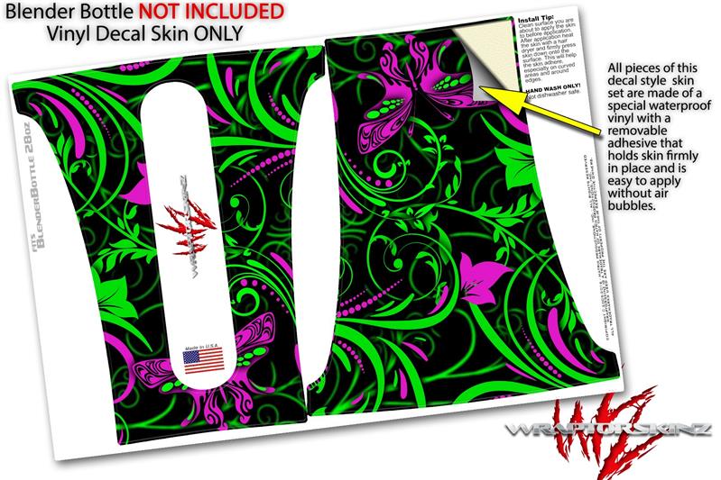 Skin Decal Wrap works with Blender Bottle 28oz Twisted Garden Green and Hot Pink (BOTTLE NOT INCLUDED)
