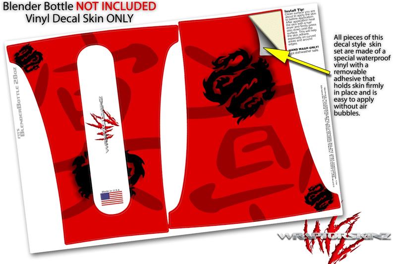 Skin Decal Wrap works with Blender Bottle 28oz Oriental Dragon Black on Red (BOTTLE NOT INCLUDED)