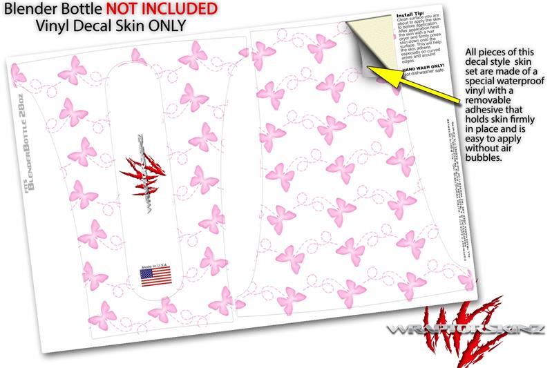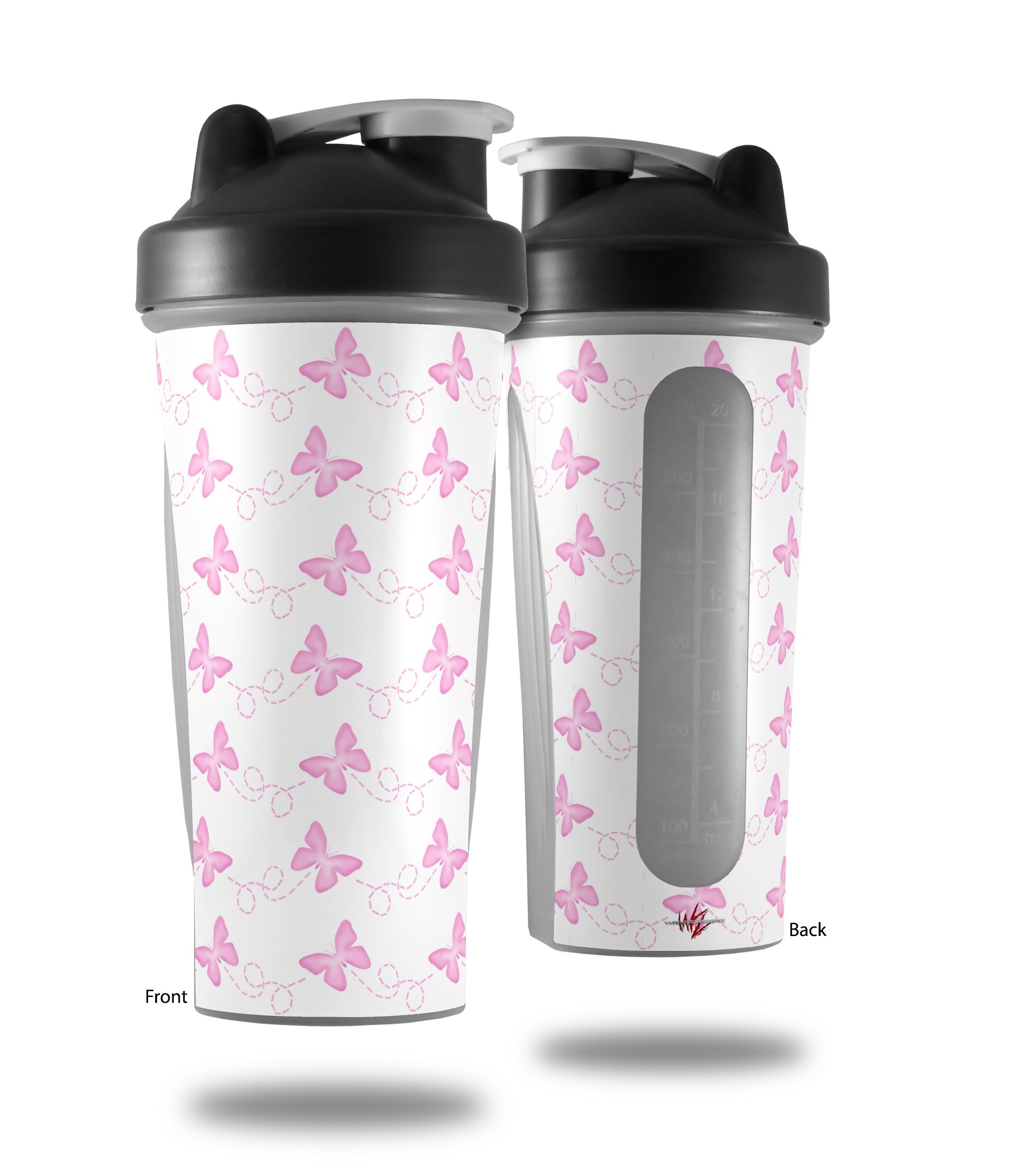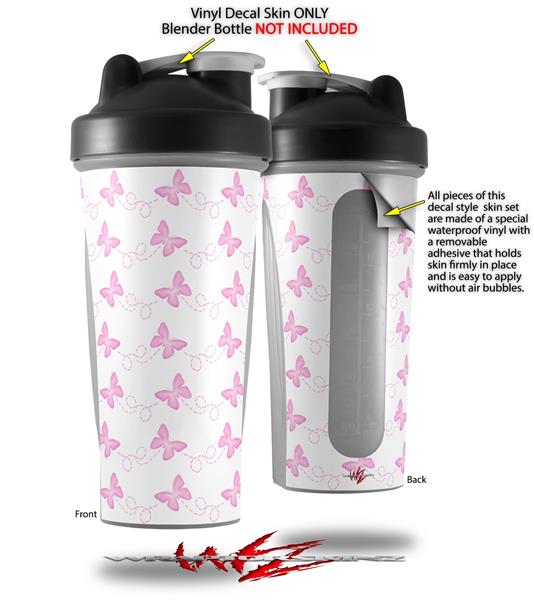 Skin Decal Wrap works with Blender Bottle 28oz Pastel Butterflies Pink on White (BOTTLE NOT INCLUDED)