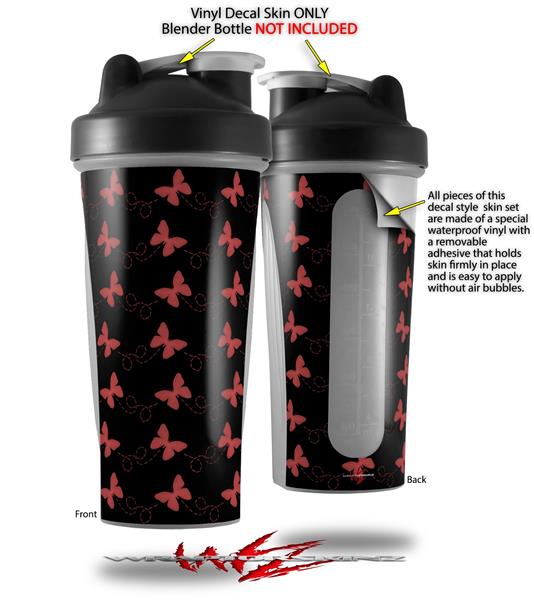 Skin Decal Wrap works with Blender Bottle 28oz Pastel Butterflies Red on Black (BOTTLE NOT INCLUDED)
