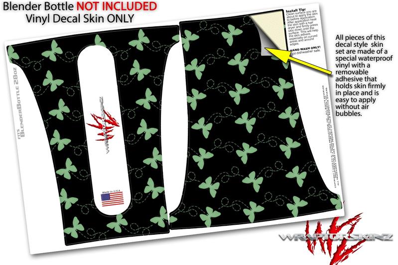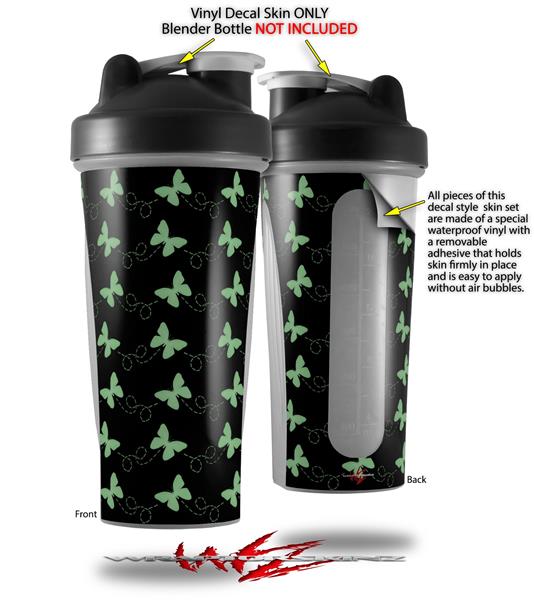 Skin Decal Wrap works with Blender Bottle 28oz Pastel Butterflies Green on Black (BOTTLE NOT INCLUDED)