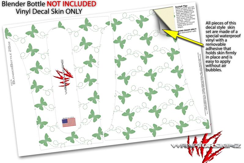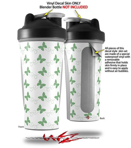 Skin Decal Wrap works with Blender Bottle 28oz Pastel Butterflies Green on White (BOTTLE NOT INCLUDED)