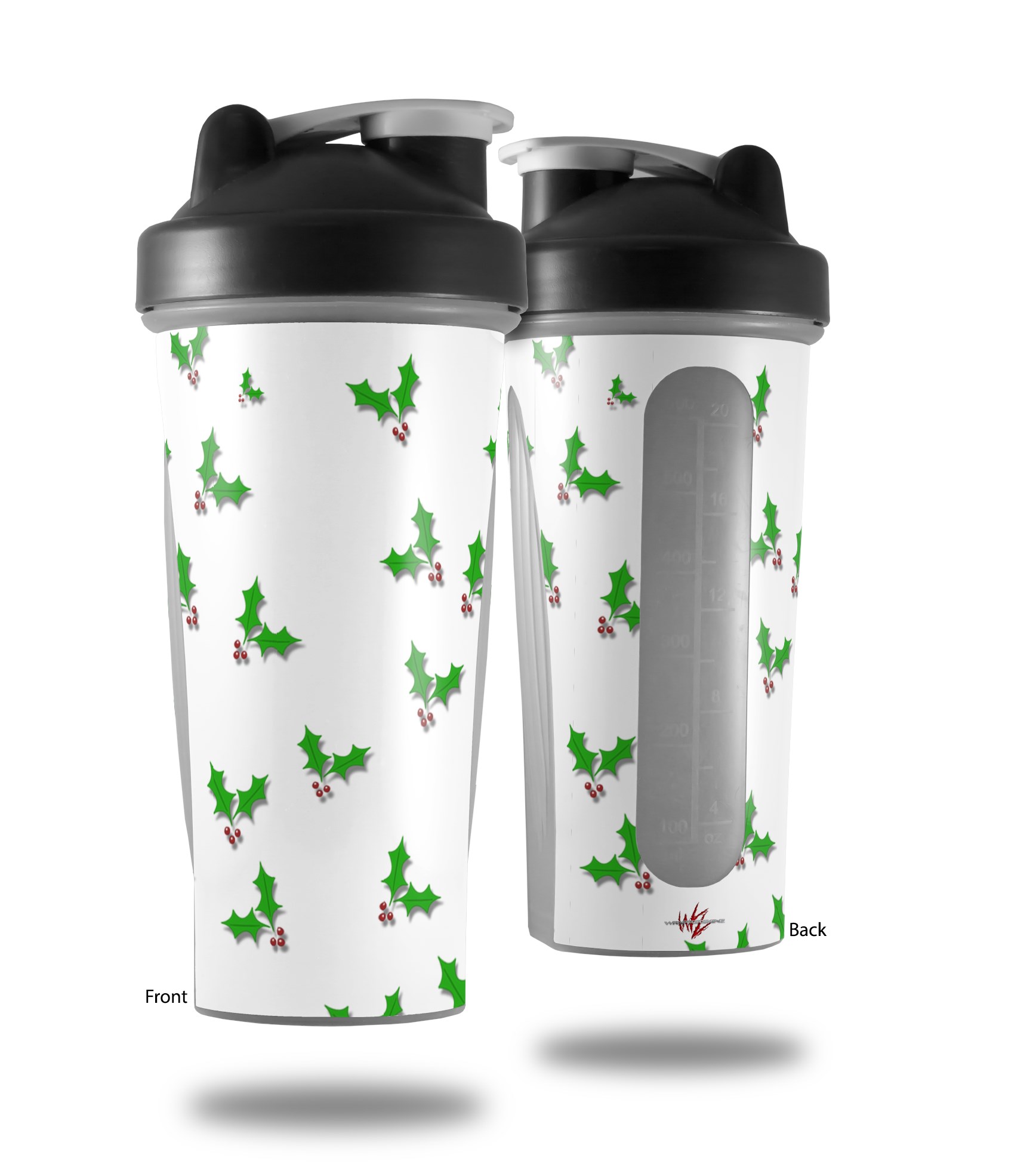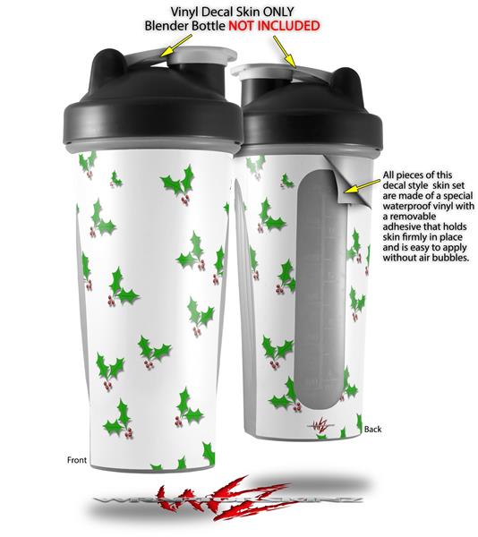 Skin Decal Wrap works with Blender Bottle 28oz Christmas Holly Leaves on White (BOTTLE NOT INCLUDED)