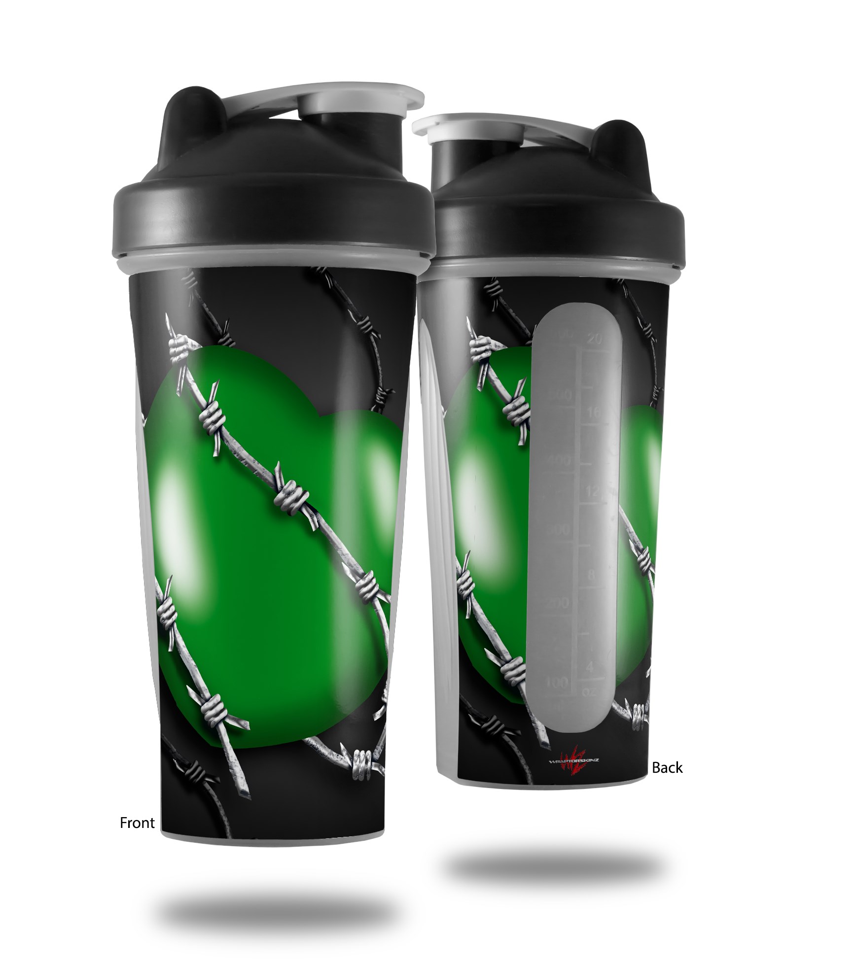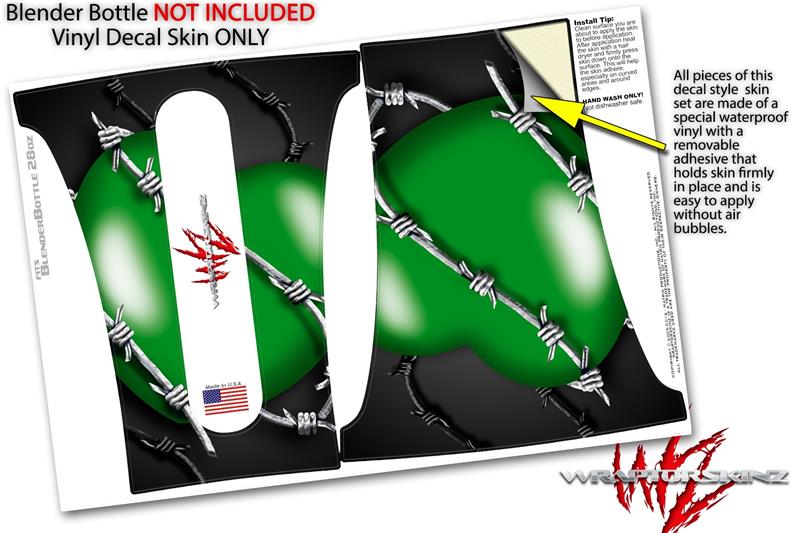 Skin Decal Wrap works with Blender Bottle 28oz Barbwire Heart Green (BOTTLE NOT INCLUDED)