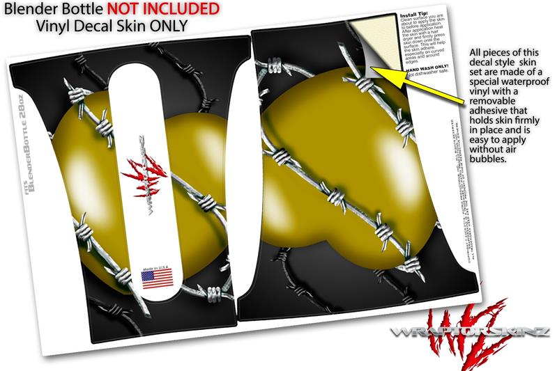 Skin Decal Wrap works with Blender Bottle 28oz Barbwire Heart Yellow (BOTTLE NOT INCLUDED)