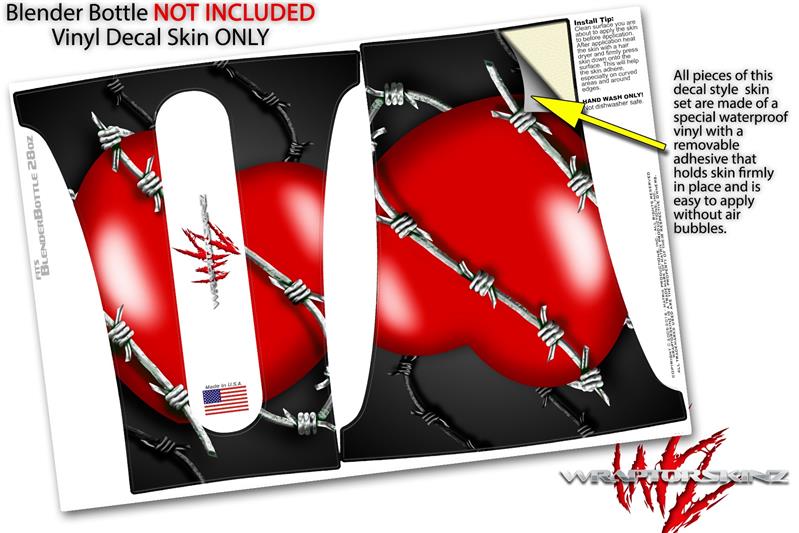 Skin Decal Wrap works with Blender Bottle 28oz Barbwire Heart Red (BOTTLE NOT INCLUDED)