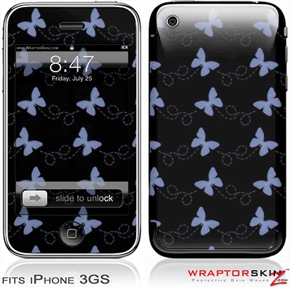 iPhone 3GS Decal Style Skin - Pastel Butterflies Blue on Black