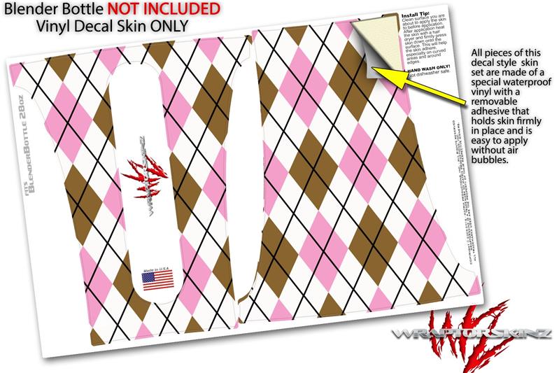 Skin Decal Wrap works with Blender Bottle 28oz Argyle Pink and Brown (BOTTLE NOT INCLUDED)