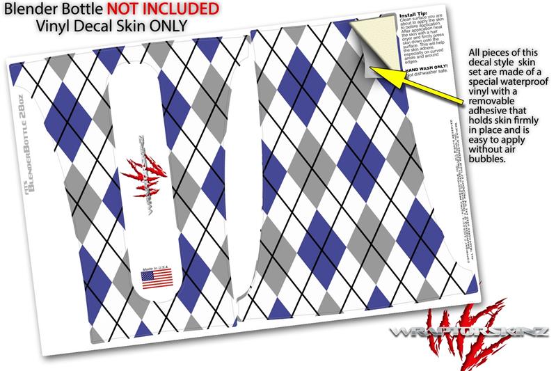 Skin Decal Wrap works with Blender Bottle 28oz Argyle Blue and Gray (BOTTLE NOT INCLUDED)