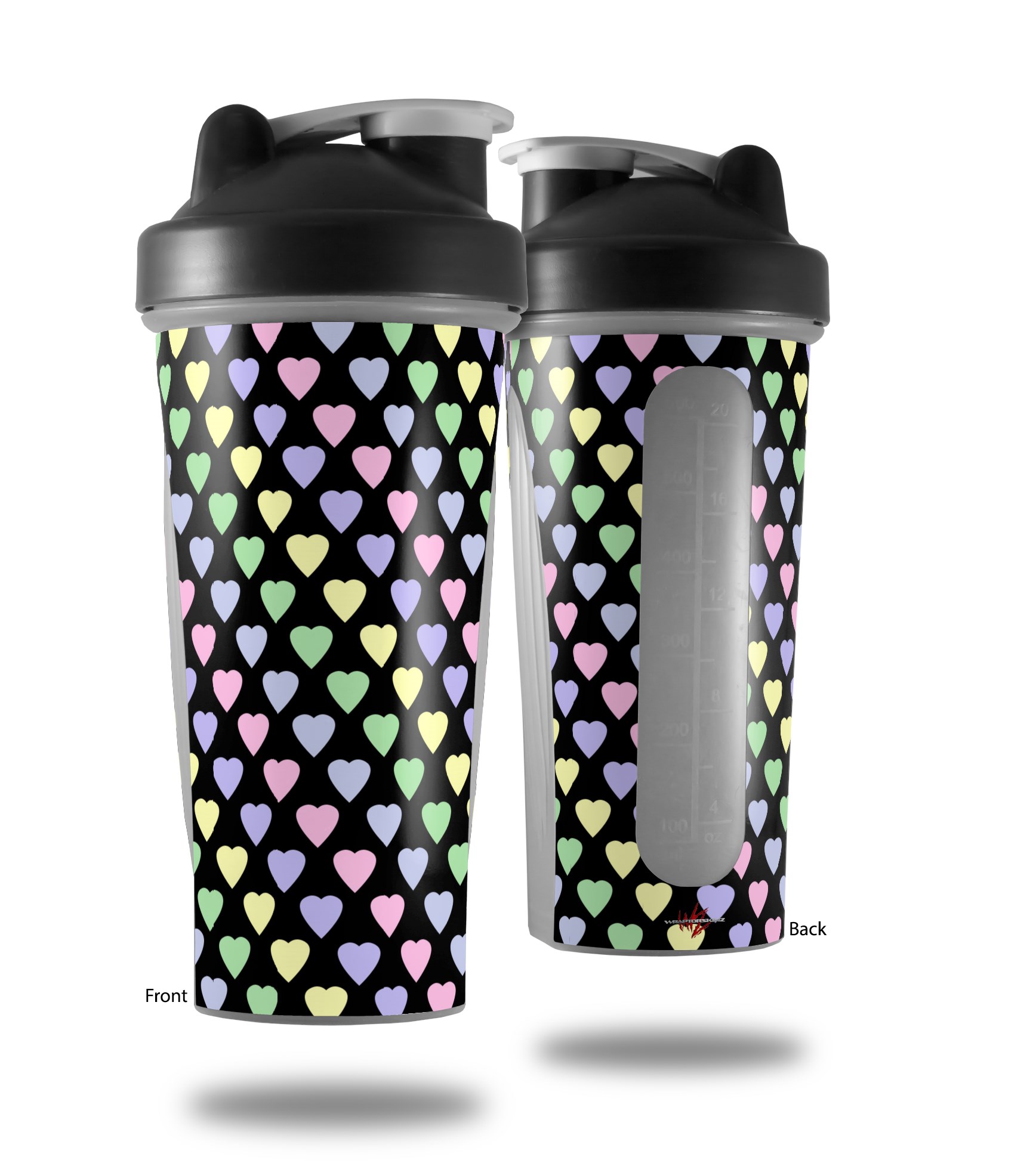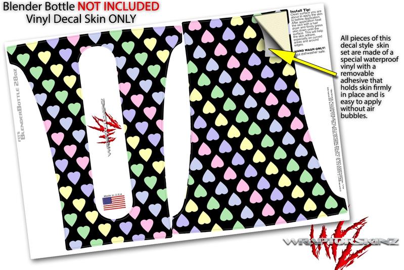 Skin Decal Wrap works with Blender Bottle 28oz Pastel Hearts on Black (BOTTLE NOT INCLUDED)