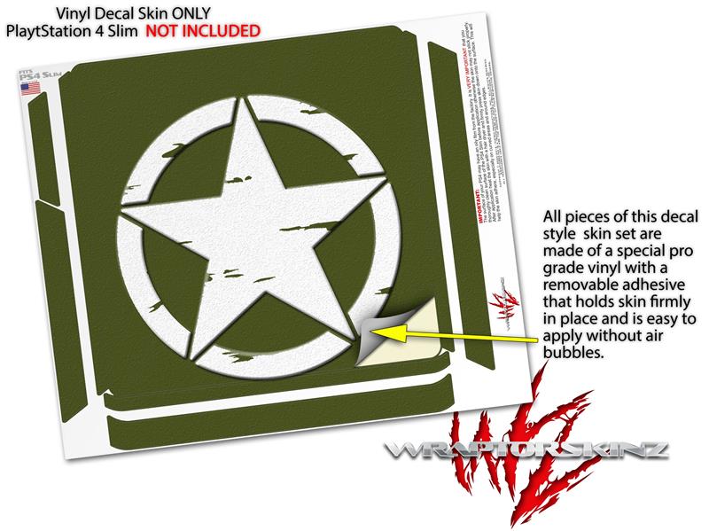 Vinyl Decal Skin Wrap compatible with Sony PlayStation 4 Slim Console Distressed Army Star (PS4 NOT INCLUDED)