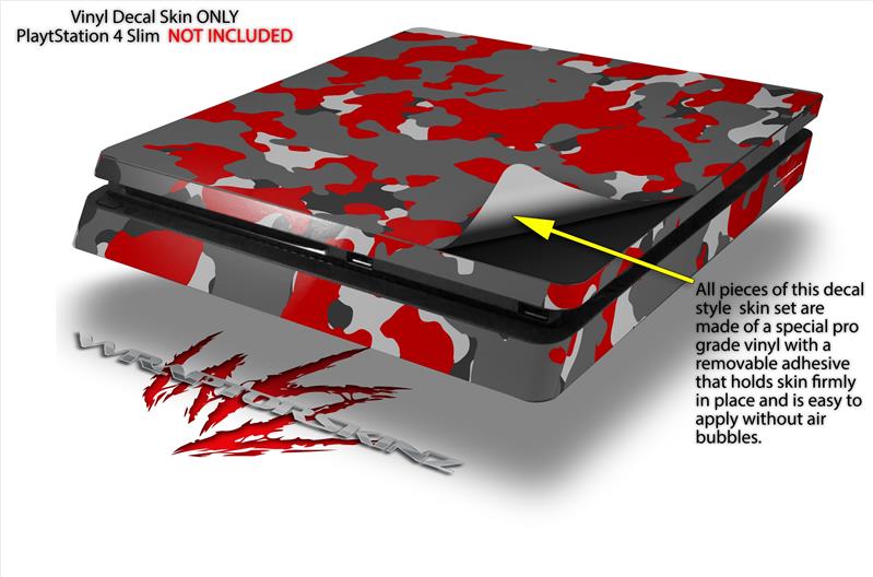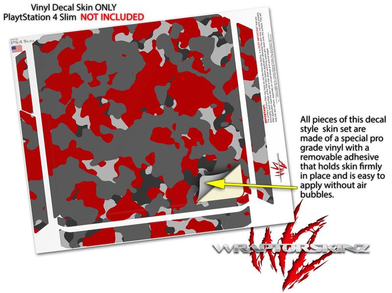 Vinyl Decal Skin Wrap compatible with Sony PlayStation 4 Slim Console WraptorCamo Old School Camouflage Camo Red (PS4 NOT INCLUDED)