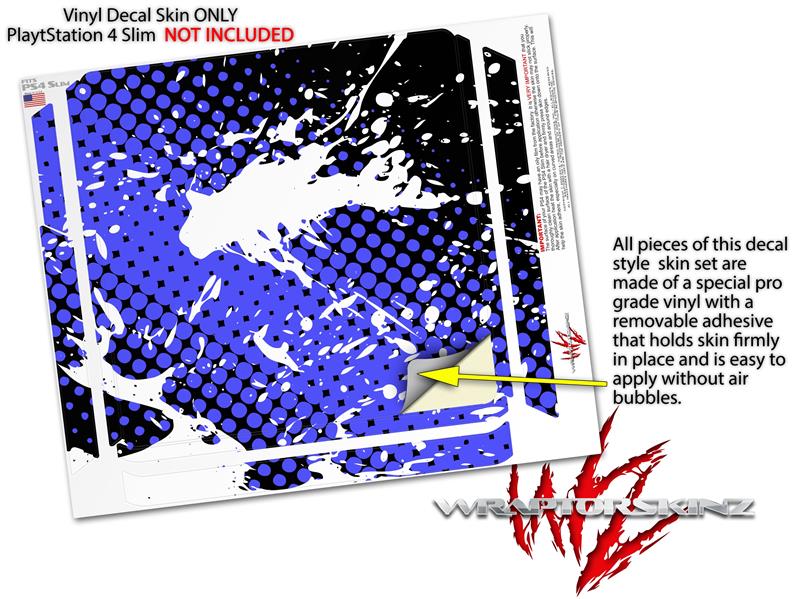 Vinyl Decal Skin Wrap compatible with Sony PlayStation 4 Slim Console Halftone Splatter White Blue (PS4 NOT INCLUDED)