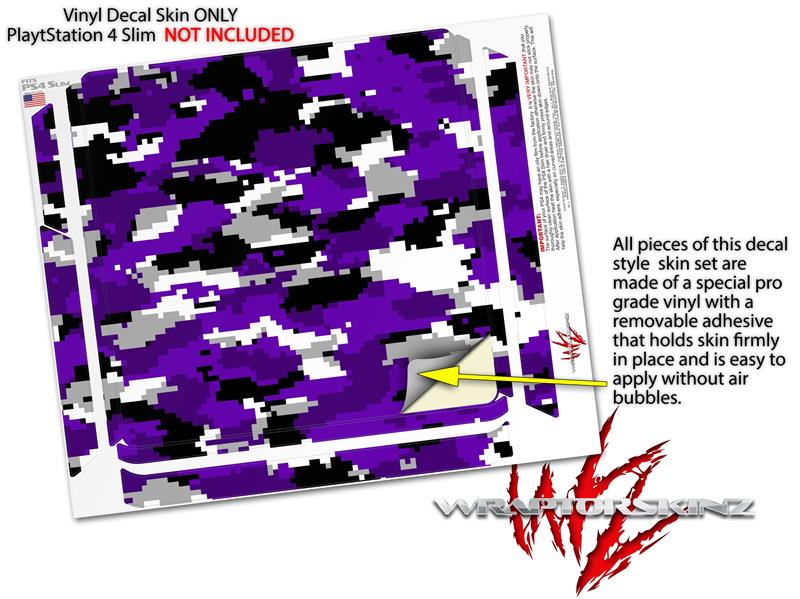 Vinyl Decal Skin Wrap compatible with Sony PlayStation 4 Slim Console WraptorCamo Digital Camo Purple (PS4 NOT INCLUDED)