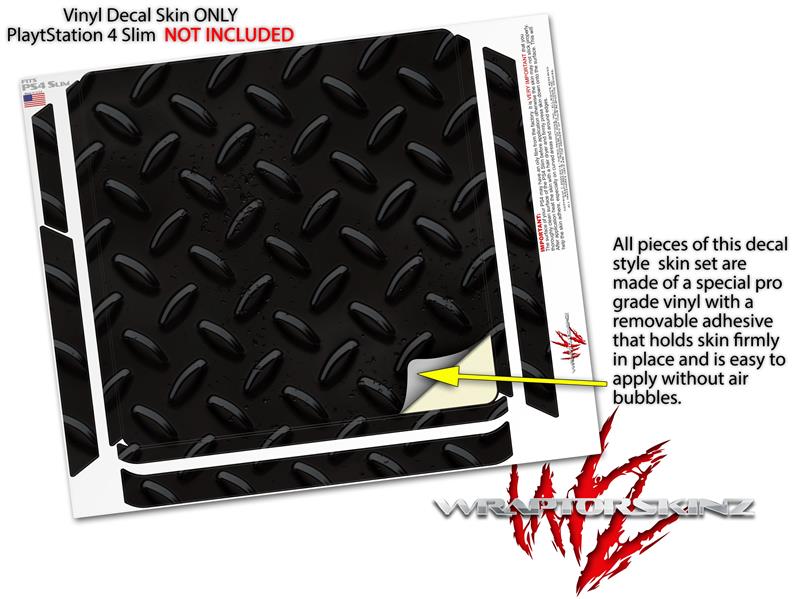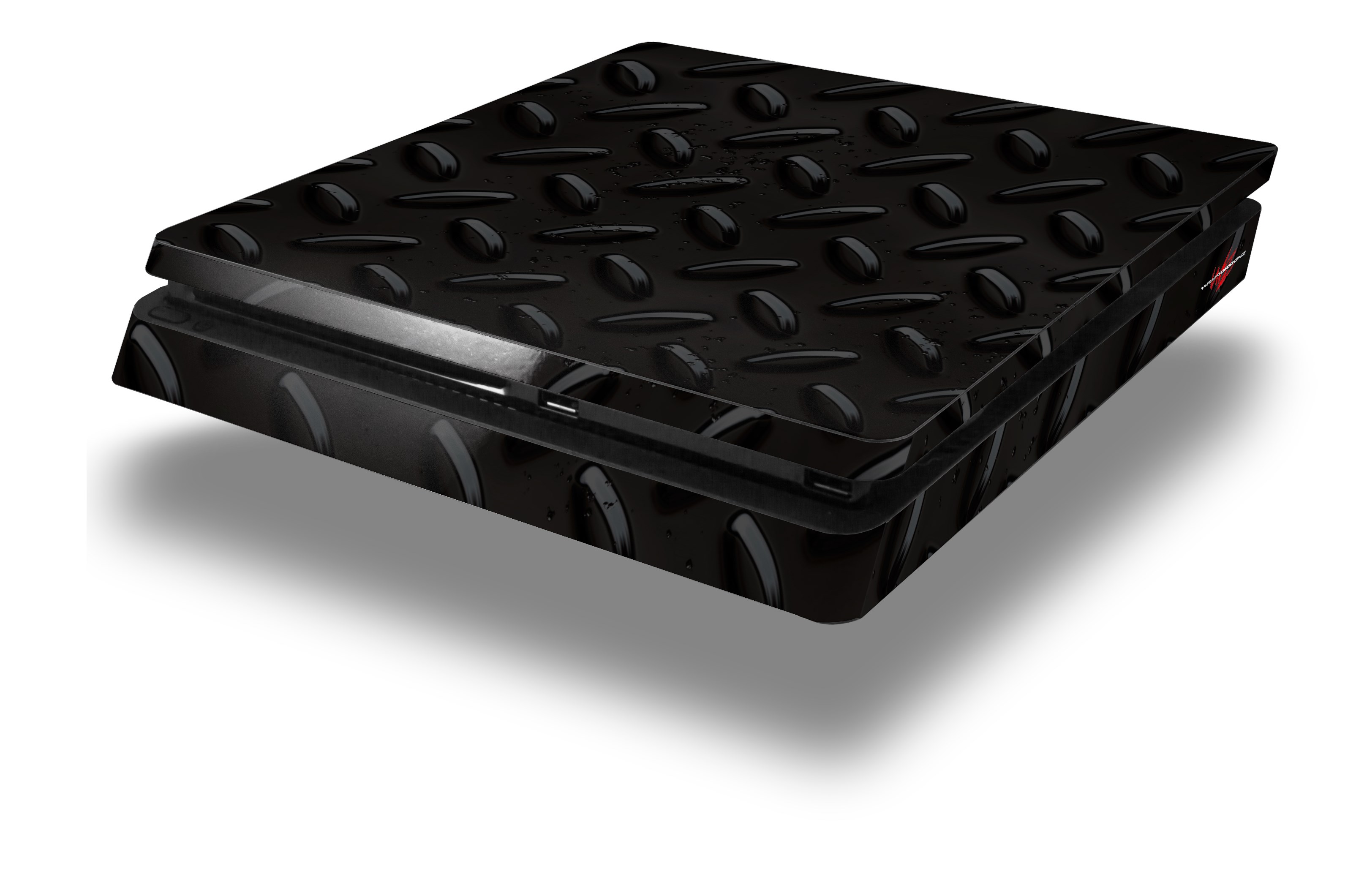 Vinyl Decal Skin Wrap compatible with Sony PlayStation 4 Slim Console Diamond Plate Metal 02 Black (PS4 NOT INCLUDED)