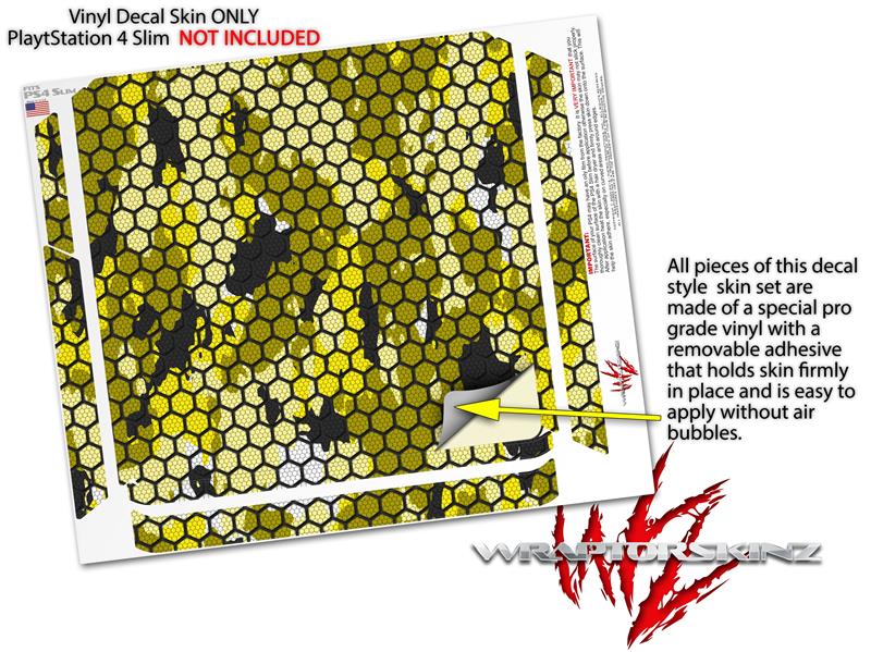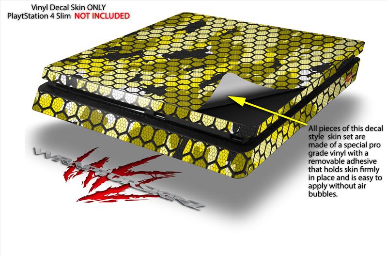 Vinyl Decal Skin Wrap compatible with Sony PlayStation 4 Slim Console HEX Mesh Camo 01 Yellow (PS4 NOT INCLUDED)