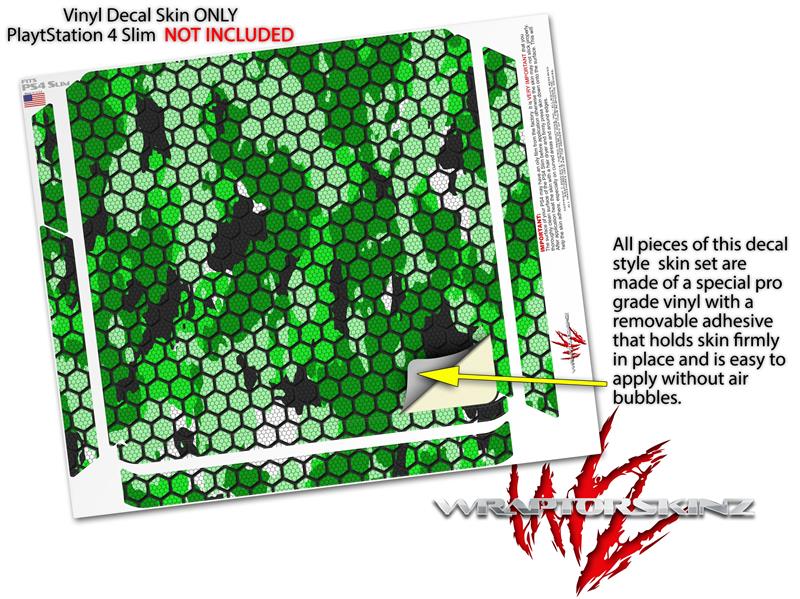 Vinyl Decal Skin Wrap compatible with Sony PlayStation 4 Slim Console HEX Mesh Camo 01 Green Bright (PS4 NOT INCLUDED)
