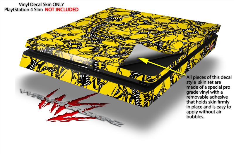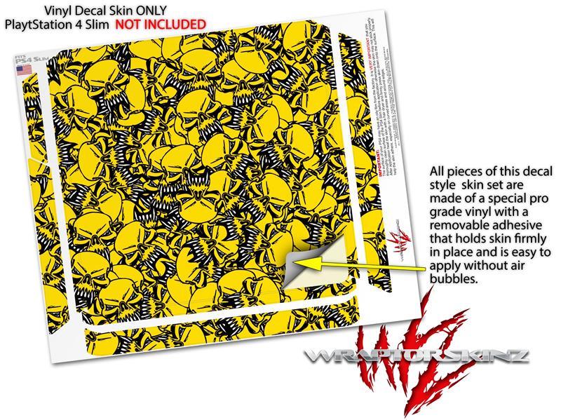 Vinyl Decal Skin Wrap compatible with Sony PlayStation 4 Slim Console Scattered Skulls Yellow (PS4 NOT INCLUDED)