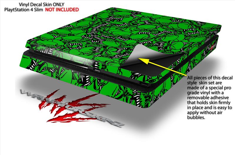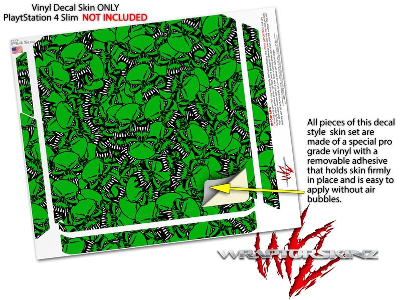Vinyl Decal Skin Wrap compatible with Sony PlayStation 4 Slim Console Scattered Skulls Green (PS4 NOT INCLUDED)