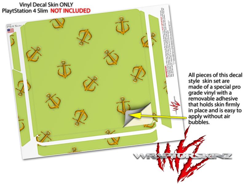 Vinyl Decal Skin Wrap compatible with Sony PlayStation 4 Slim Console Anchors Away Sage Green (PS4 NOT INCLUDED)