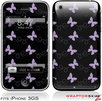 iPhone 3GS Decal Style Skin - Pastel Butterflies Purple on Black