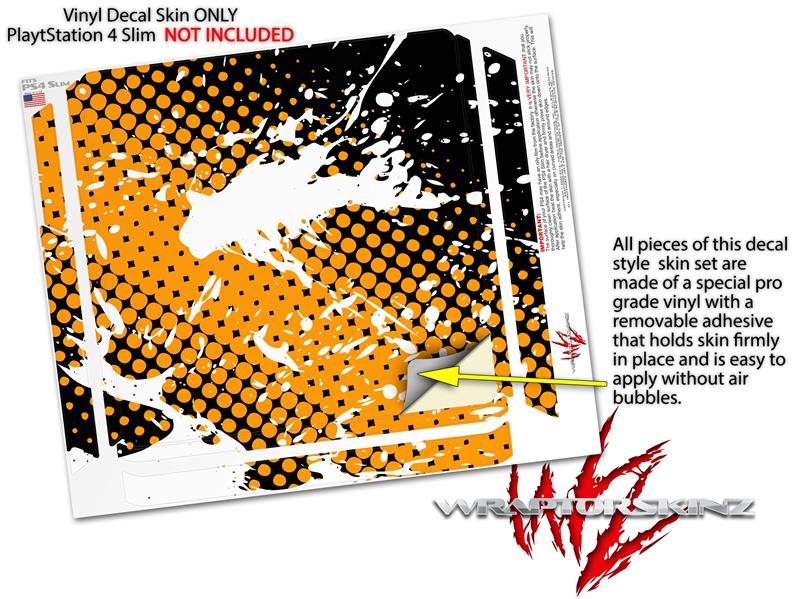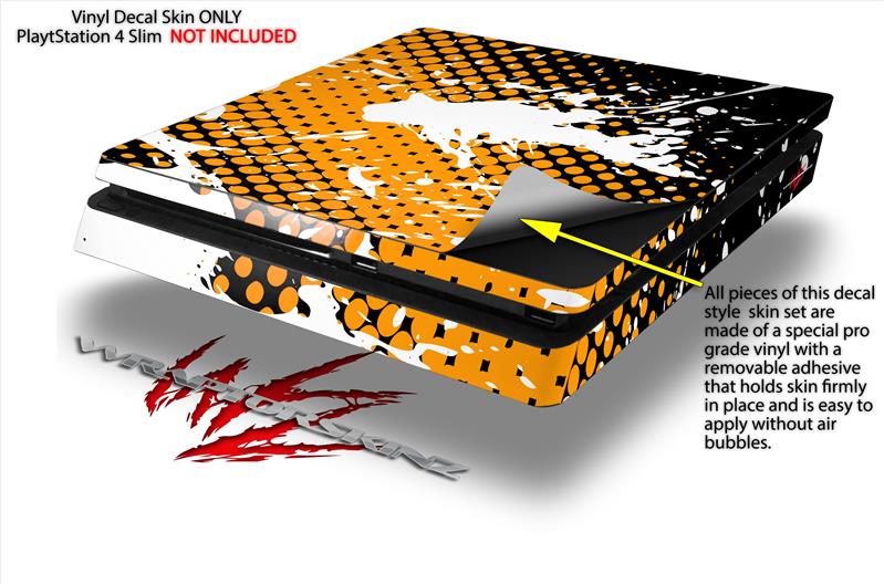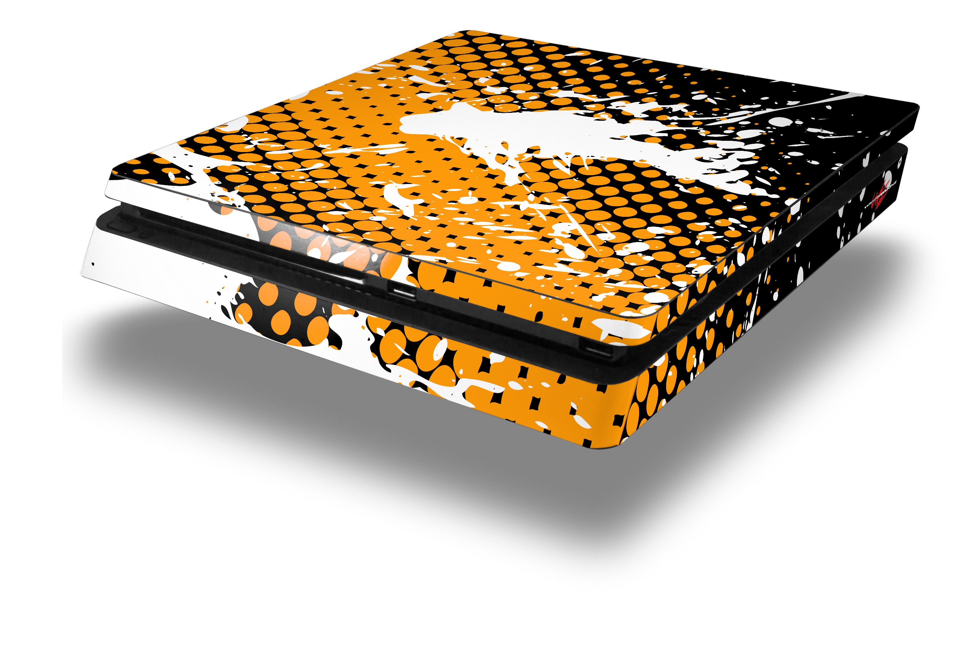 Vinyl Decal Skin Wrap compatible with Sony PlayStation 4 Slim Console Halftone Splatter White Orange (PS4 NOT INCLUDED)