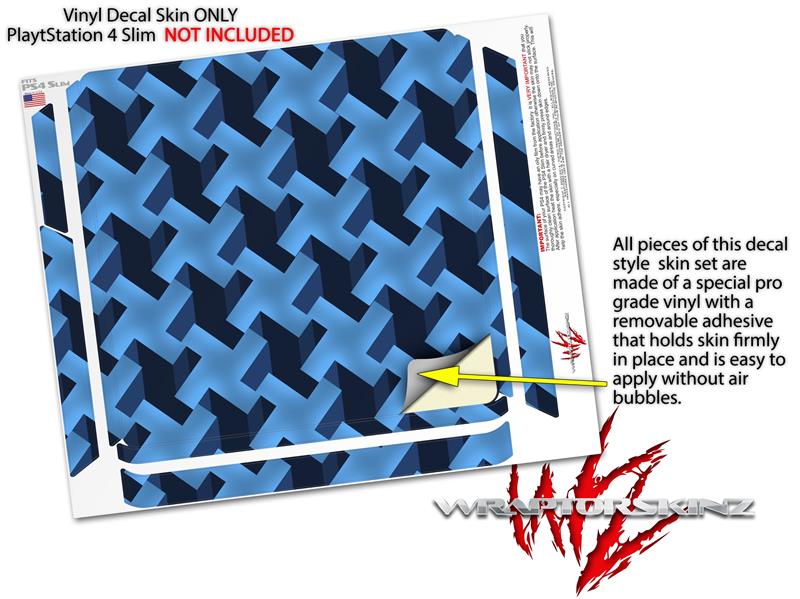Vinyl Decal Skin Wrap compatible with Sony PlayStation 4 Slim Console Retro Houndstooth Blue (PS4 NOT INCLUDED)