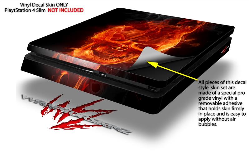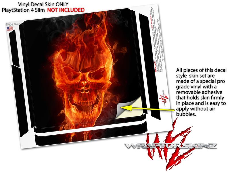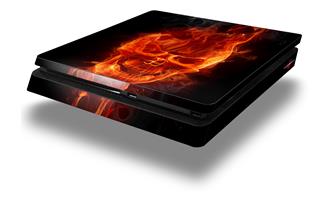Vinyl Decal Skin Wrap compatible with Sony PlayStation 4 Slim Console Flaming Fire Skull Orange (PS4 NOT INCLUDED)