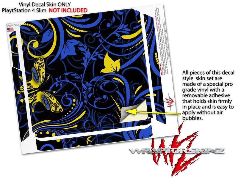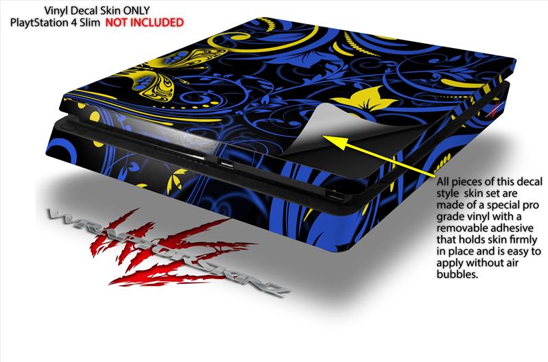 Vinyl Decal Skin Wrap compatible with Sony PlayStation 4 Slim Console Twisted Garden Blue and Yellow (PS4 NOT INCLUDED)
