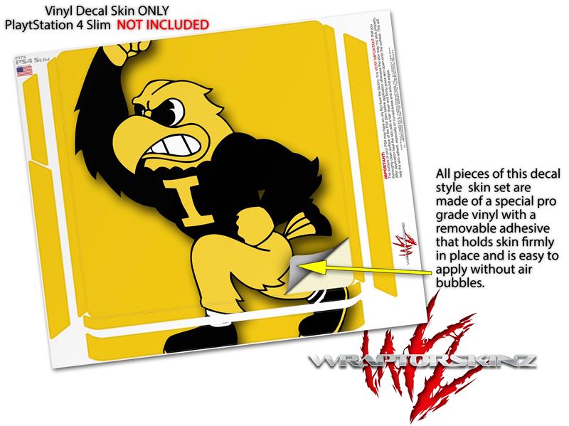 Vinyl Decal Skin Wrap compatible with Sony PlayStation 4 Slim Console Iowa Hawkeyes Herky on Gold (PS4 NOT INCLUDED)