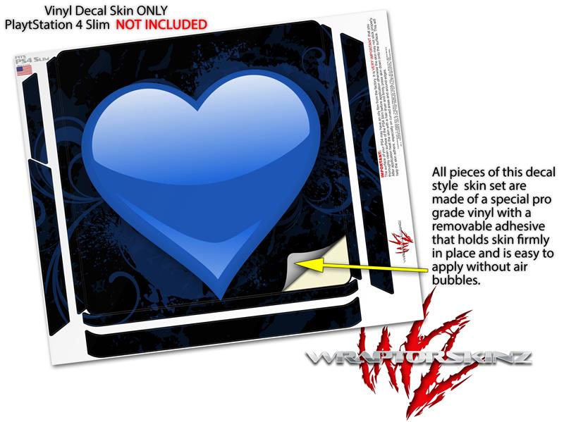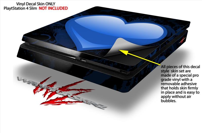 Vinyl Decal Skin Wrap compatible with Sony PlayStation 4 Slim Console Glass Heart Grunge Blue (PS4 NOT INCLUDED)