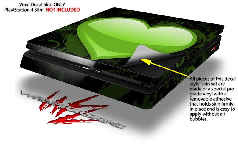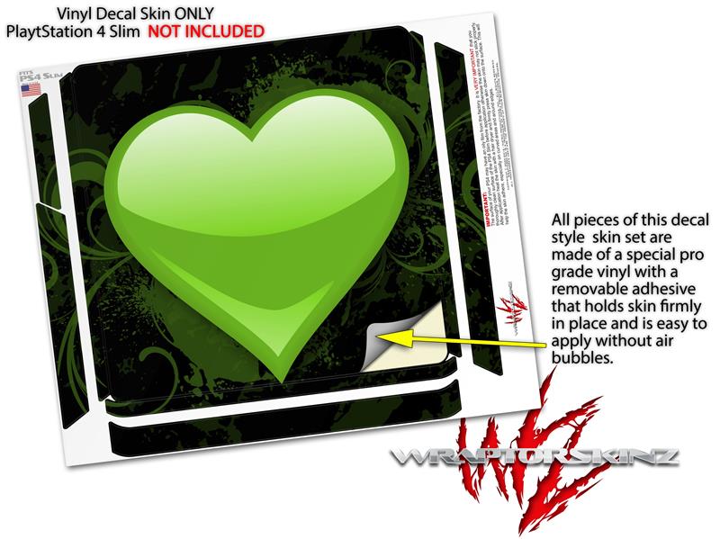 Vinyl Decal Skin Wrap compatible with Sony PlayStation 4 Slim Console Glass Heart Grunge Green (PS4 NOT INCLUDED)