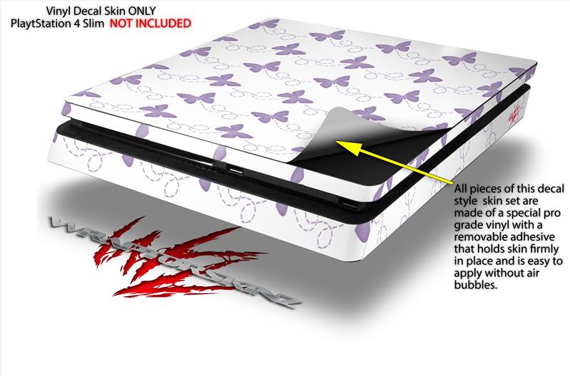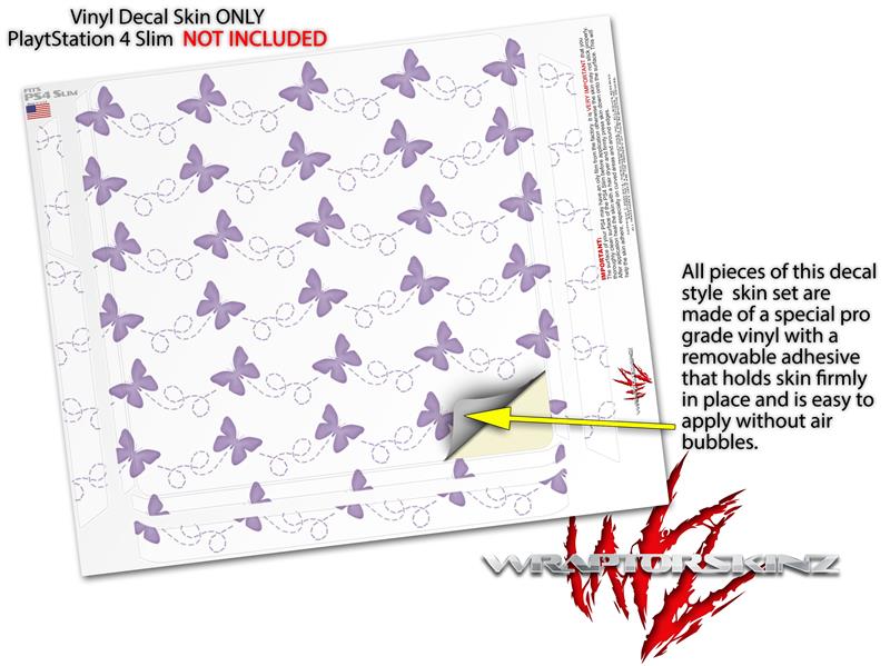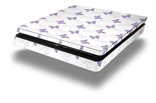 Vinyl Decal Skin Wrap compatible with Sony PlayStation 4 Slim Console Pastel Butterflies Purple on White (PS4 NOT INCLUDED)