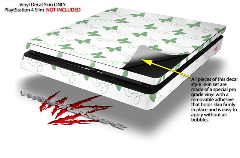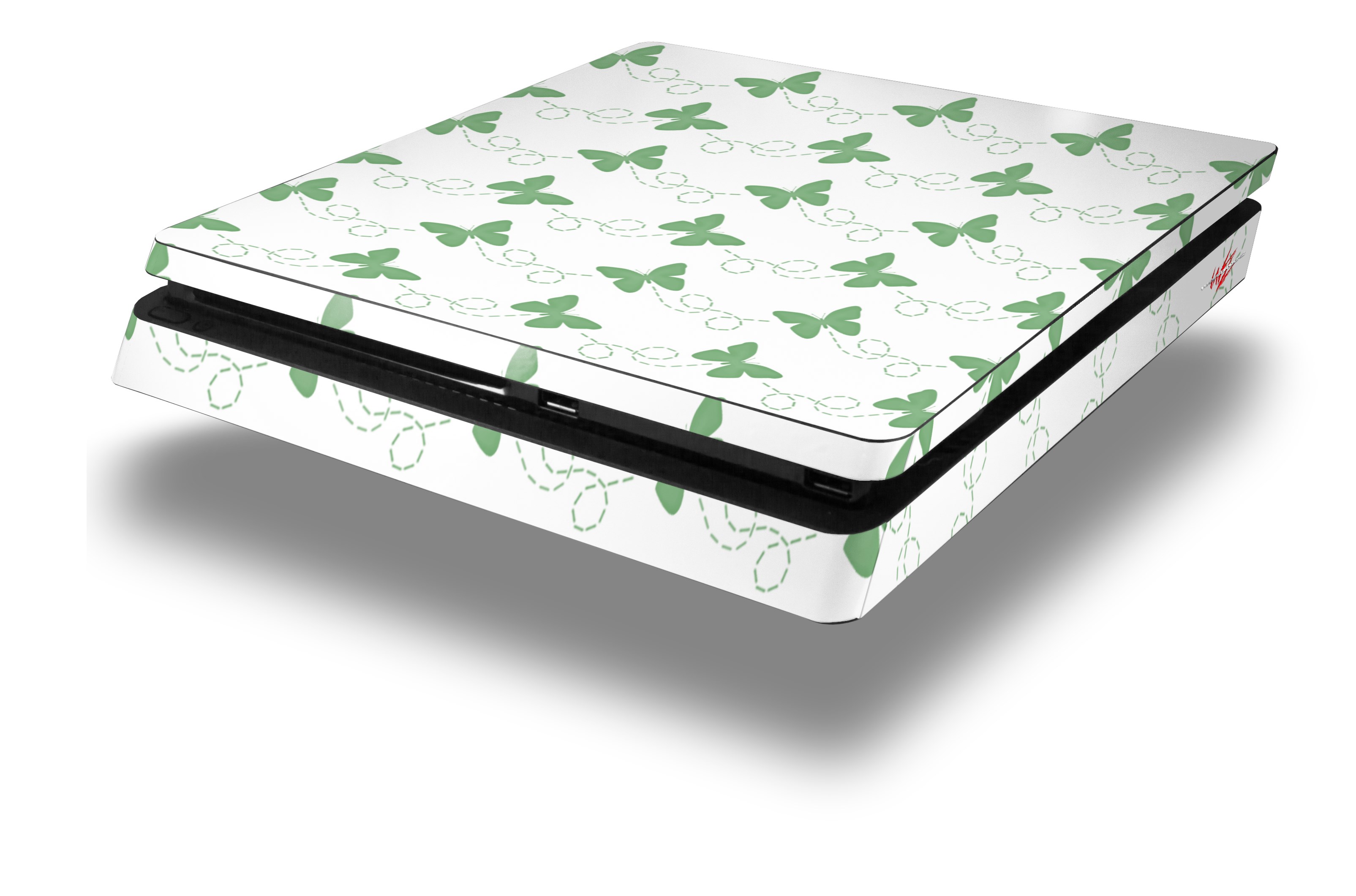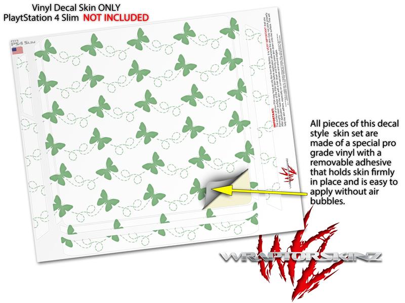 Vinyl Decal Skin Wrap compatible with Sony PlayStation 4 Slim Console Pastel Butterflies Green on White (PS4 NOT INCLUDED)
