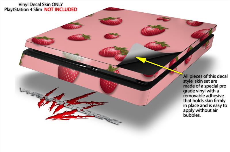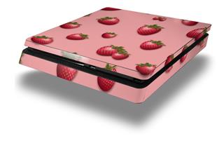Vinyl Decal Skin Wrap compatible with Sony PlayStation 4 Slim Console Strawberries on Pink (PS4 NOT INCLUDED)
