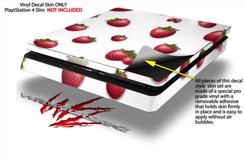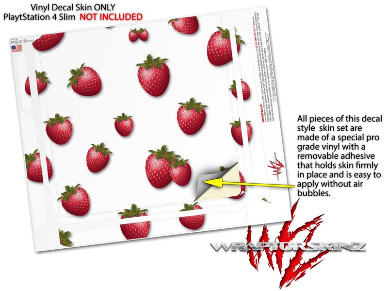 Vinyl Decal Skin Wrap compatible with Sony PlayStation 4 Slim Console Strawberries on White (PS4 NOT INCLUDED)