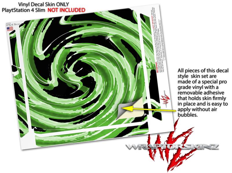 Vinyl Decal Skin Wrap compatible with Sony PlayStation 4 Slim Console Alecias Swirl 02 Green (PS4 NOT INCLUDED)