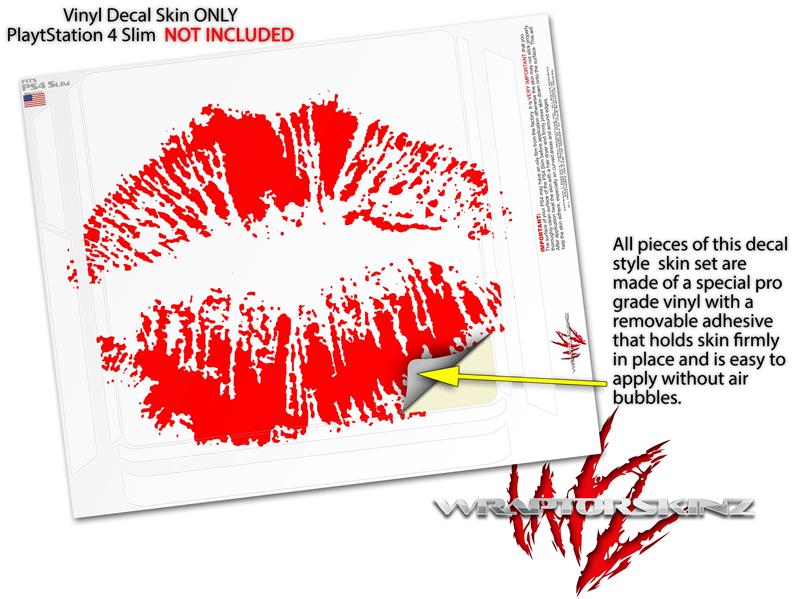 Vinyl Decal Skin Wrap compatible with Sony PlayStation 4 Slim Console Big Kiss Lips Red on White (PS4 NOT INCLUDED)