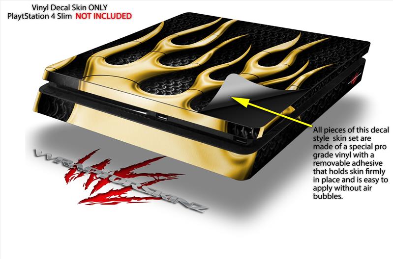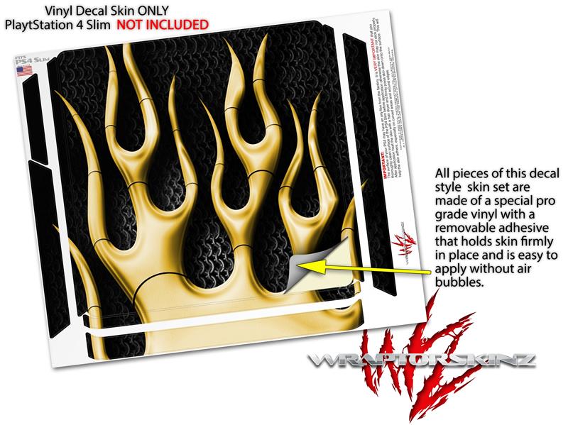 Vinyl Decal Skin Wrap compatible with Sony PlayStation 4 Slim Console Metal Flames Yellow (PS4 NOT INCLUDED)