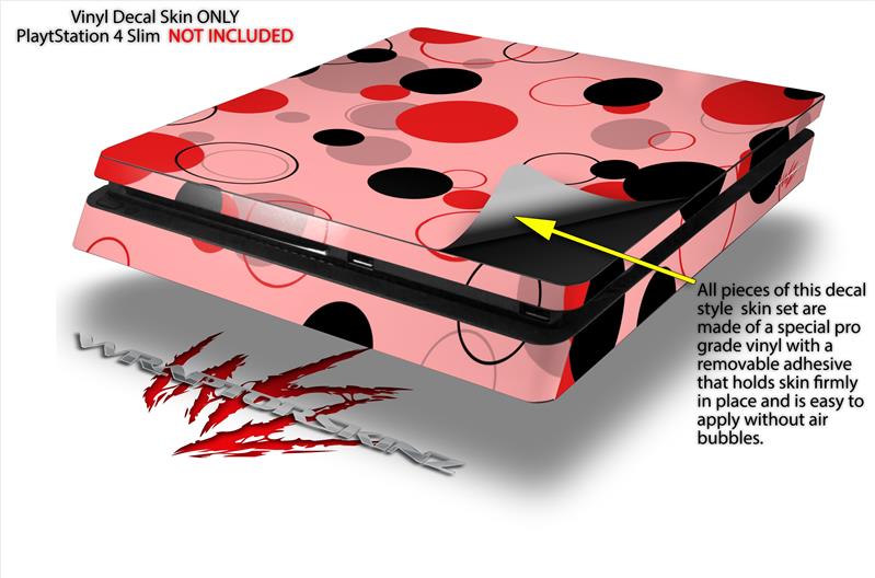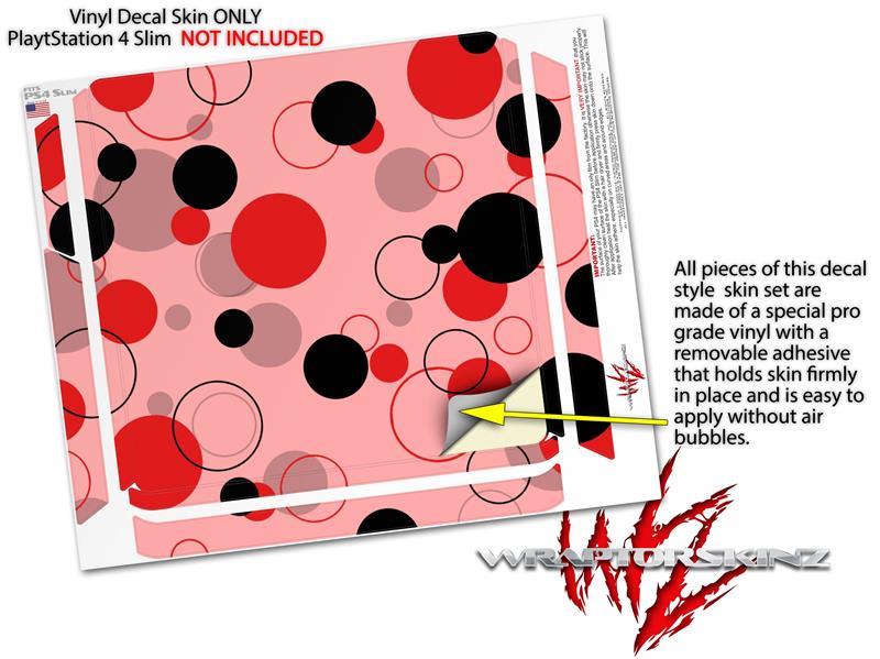 Vinyl Decal Skin Wrap compatible with Sony PlayStation 4 Slim Console Lots of Dots Red on Pink (PS4 NOT INCLUDED)
