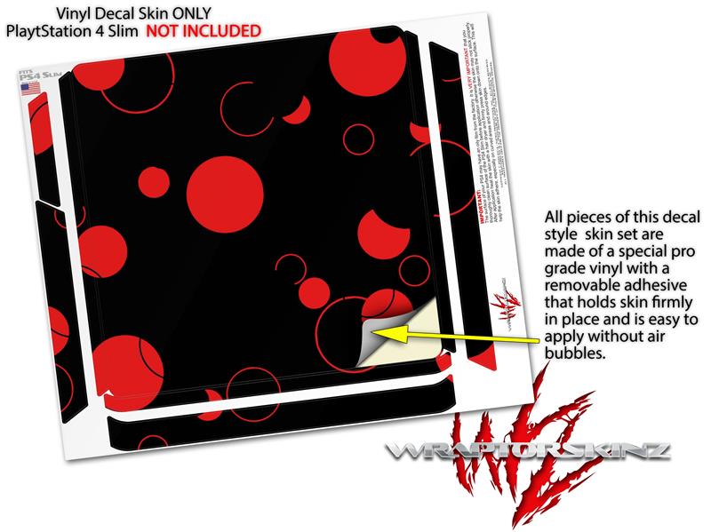 Vinyl Decal Skin Wrap compatible with Sony PlayStation 4 Slim Console Lots of Dots Red on Black (PS4 NOT INCLUDED)