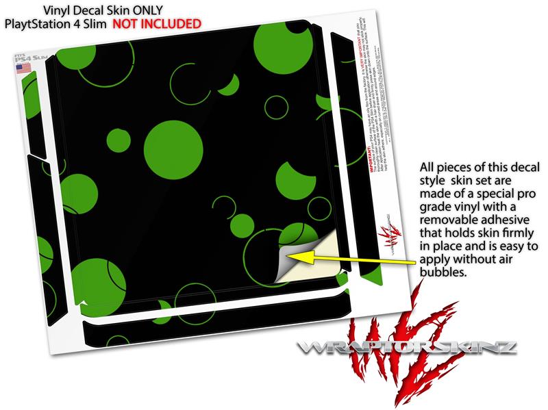 Vinyl Decal Skin Wrap compatible with Sony PlayStation 4 Slim Console Lots of Dots Green on Black (PS4 NOT INCLUDED)