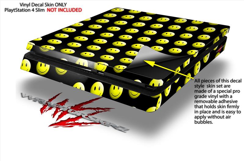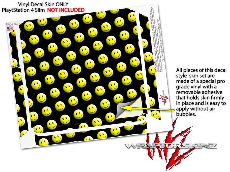 Vinyl Decal Skin Wrap compatible with Sony PlayStation 4 Slim Console Smileys on Black (PS4 NOT INCLUDED)
