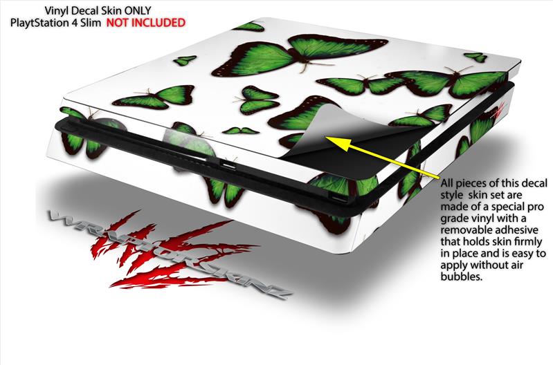 Vinyl Decal Skin Wrap compatible with Sony PlayStation 4 Slim Console Butterflies Green (PS4 NOT INCLUDED)