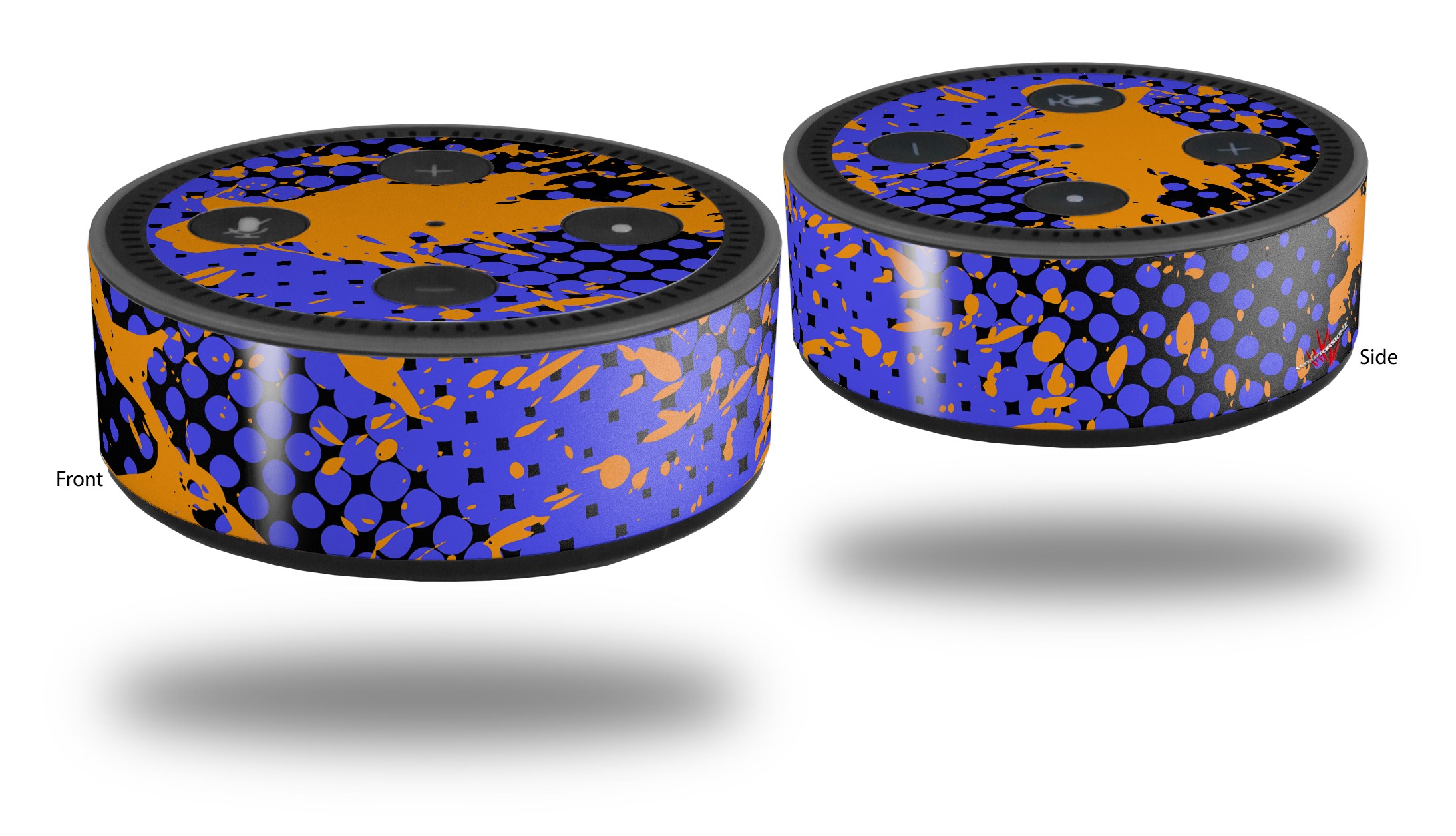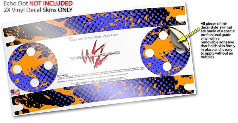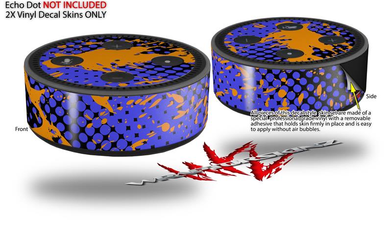 Skin Wrap Decal Set 2 Pack for Amazon Echo Dot 2 - Halftone Splatter Orange Blue (2nd Generation ONLY - Echo NOT INCLUDED)